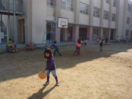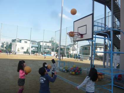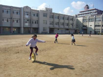 今日は、春を思わせる陽気の中、休み時間にあちらこちらでボール遊びや一輪車遊びなどをしていました。
