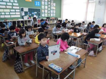 2年生の教室では、読書タイムに姿勢よく本を読んでいました。