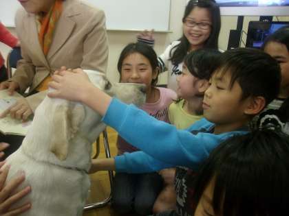 盲導犬は、お仕事中は、ふれたり声をかけたりしてはいけません。