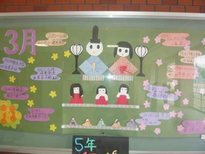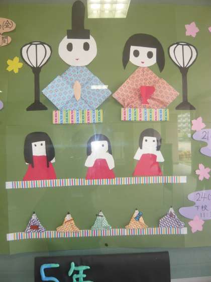 3月の玄関掲示は、雛祭りをイメージして掲示委員会が作りました。