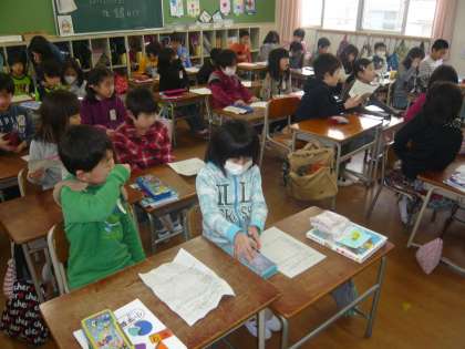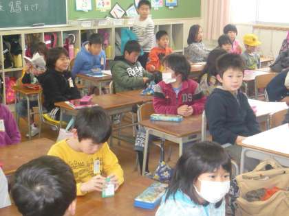 2年生の教室に行くと、ノビノビたいそうは終わっていました。
