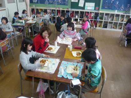 今日は、特別に保健室の桂先生も入って、楽しくおいしくハヤシライスをいただいていました。