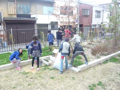 美化栽培委員会の児童がバタフライガーデンの雑草抜きなど、整美に努めていました。