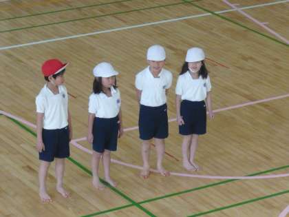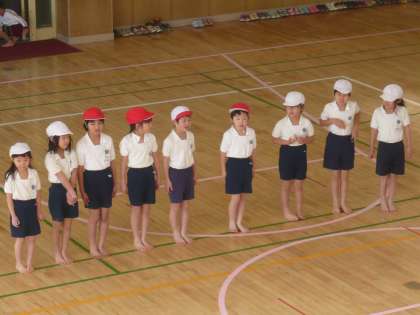 2時間目に鶴橋幼稚園、東桃谷幼児の園、東桃谷小学校1年生が講堂で交流しました。
