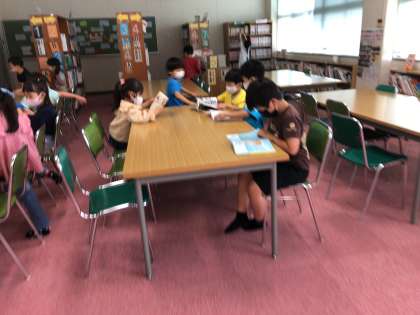 久ふりの図書館開放では、いつもよりも多くの子ども達が図書室で読書を楽しんでいました。