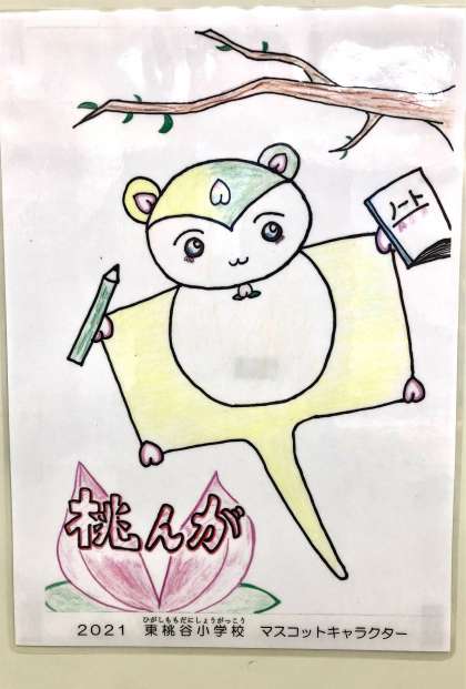 このキャラクターは好奇心旺盛で何にでもチャレンジするキャラクターなので、東桃谷小学校のみなさんにも、いろいろなことに興味をもって、どんどんチャレンジしてほしいという願いが込められているそうです。