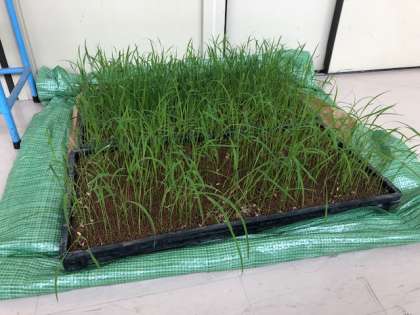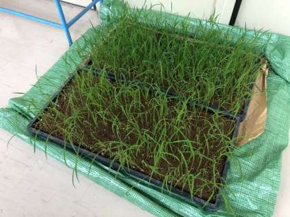 5年生が社会科の学習で、稲の苗を育てています。ずいぶん大きく育ちました。