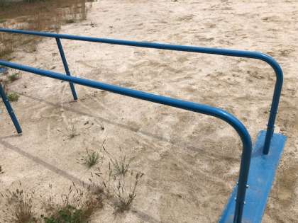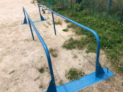 一輪車練習用スタンドを設置しました。まだ一輪車に乗り始めの人も、これから乗ろうと思っている人も、このスタンドを使ってどんどん練習してほしいと思います。