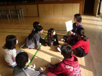 6年生が1年生に聞いていたりして、各グループとも和やかに真剣にクイズに答えていました。