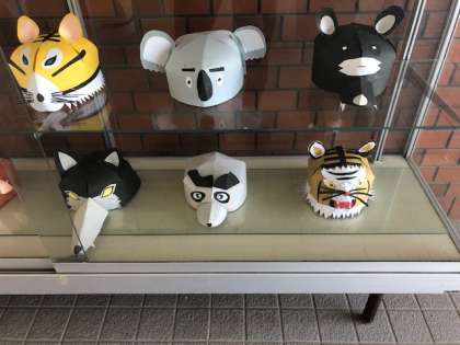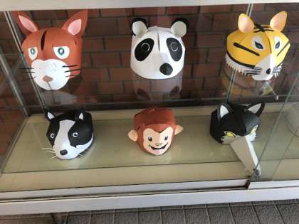 画用紙でつくった動物で、頭にかぶることができるようになっています。