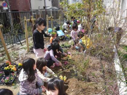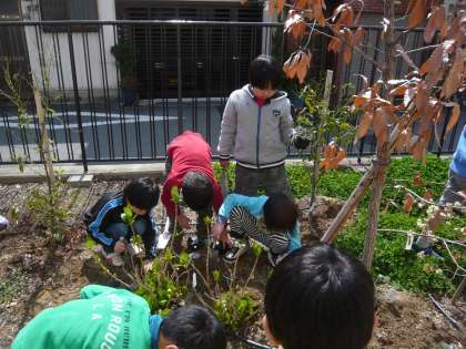 今日は、2年生が引き継ぎ、石拾い、雑草抜きの後、花苗を植えました。