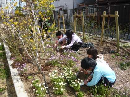 給食終了を待ちかねて2年生がバタフライガーデンにやってきました。