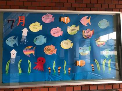今月の玄関掲示は、委員会の児童作成の海の生き物シリーズです。