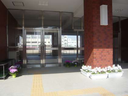 玄関には、卒業式を飾ったサイネリア・サクラソウなどの鉢植えを置いています。入学式まで花がもつかなと心配しております。