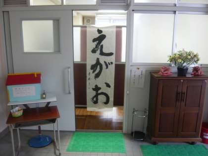 今年度も子どもたちが笑顔で学校生活を過ごしてほしいと願い、校長室入口のパーテーションに「えがお」をはっています。