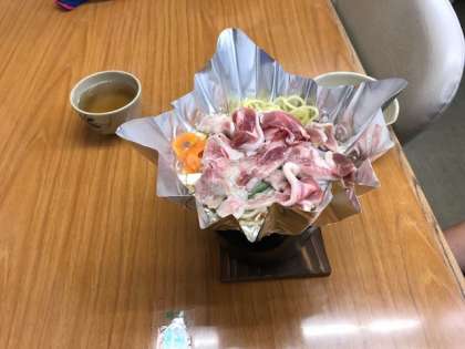鴨鍋に火が入り、もうすぐ出来あがります。