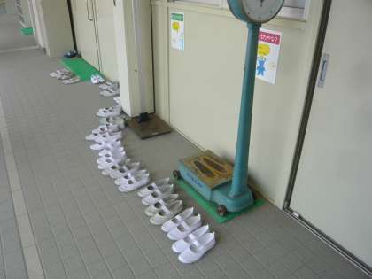 保健室前の上靴をきちんとそろえていました。
