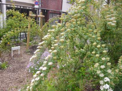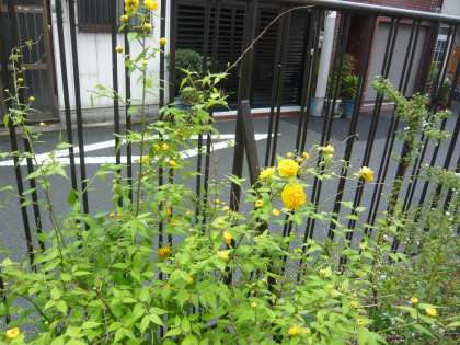 白いぼんぼりのようなコデマリ、山吹色そのもののヤマブキが花をつけていました。