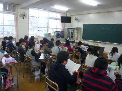 6年1組、2組教室では、すでに子どもたち一人一人が読書に集中していました。