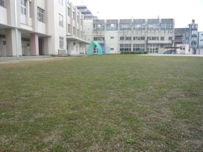 今年は雨の日が多く、運動場、芝生を思うように使えません。