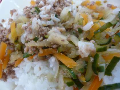 いろいろな具材を混ぜ合わせて、おいしくいただきました。