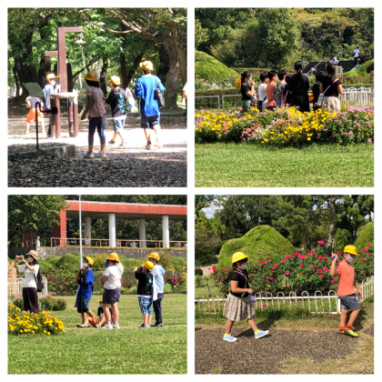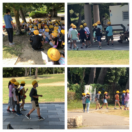 今日は、3・4年生が服部緑地公園へ遠足に出かけました。公園に着いた後は、3・4年生でグループを作り、グループごとにポイントを探して回りました。円形花壇、民家集落、山の池などのポイントごとに班で協力して課題をクリアしていきました。ゴール到着後はドングリ拾いです。今の時期山ほどのドングリが落ちていました。