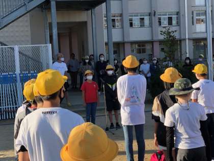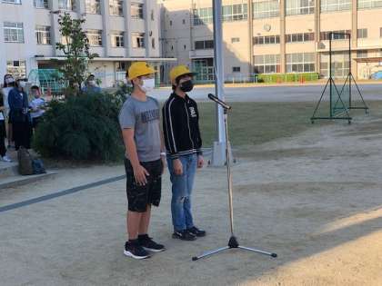 出発式です。1泊2日、信楽鳥羽への修学旅行に出発します。司会の児童、挨拶の児童もしっかり話をし、素晴らしい修学旅行になることを感じさせます。