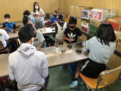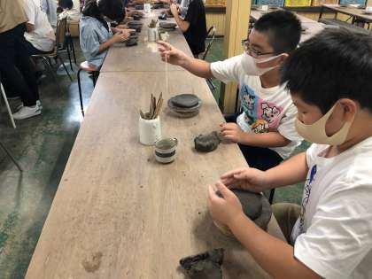 さあ製作開始です。教えていただいた通り、粘土を叩いて伸ばします。