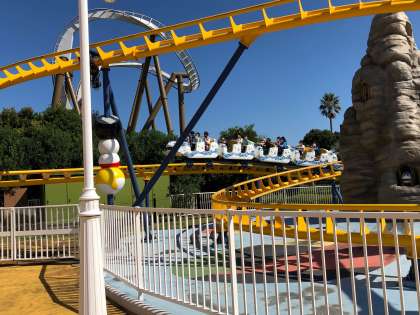ピレネーよりおとなしいジェットコースターですが、叫び声が聞こえます。