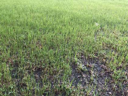 現在、養生中の芝生ですが、種を蒔いてから1週間が経ち、冬芝が成長してきました。まだ全面的ではありませんが、少しずつ芝生が冬芝で緑に変わってきています。