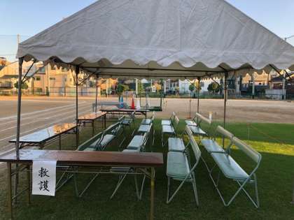 運動会に向けて最後の準備をし、子ども達の登校を待ちます。