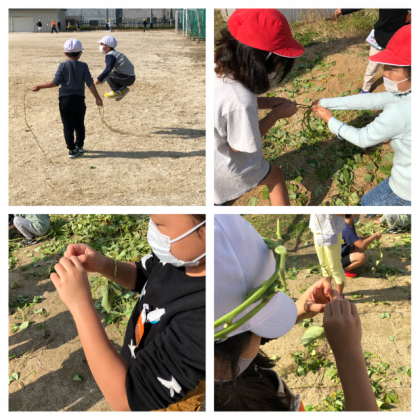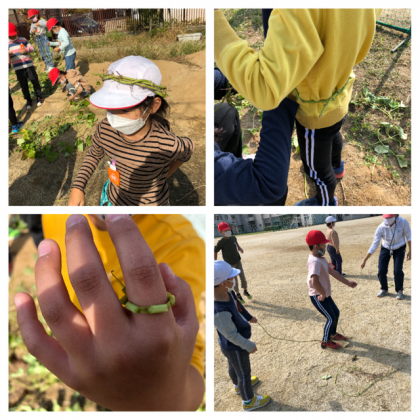収穫の後は、さつまいものつるを使っていろいろな遊びをしました。