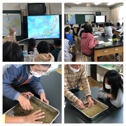 京都技術士会から竹内篤雄先生にお越しいただき、6年生が地震が起きる仕組みについて教えていただきました。