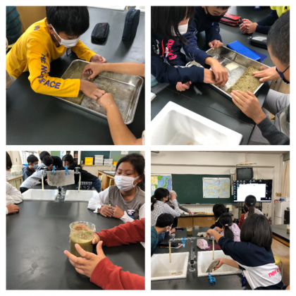 プレート型地震や直下型地震、液状化現象などを実験で理解したり、簡易地震計を使っての波形の起こり方を知ったりするなど、大切な事柄を楽しみながら学ぶことができました。