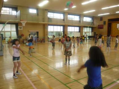 子どもたちは、バスケットボールやソフトバレーボールで思い思いに遊んでいます。