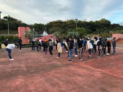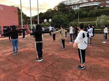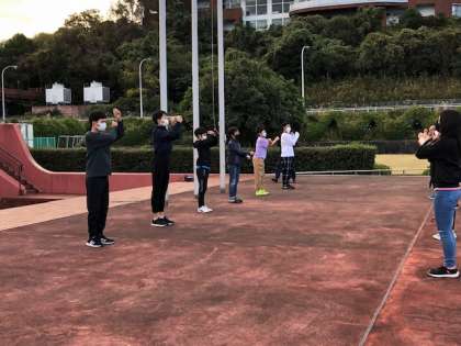 朝のつどいです。元気に挨拶をして、朝の体操です。今日も元気に活動します。