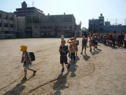 6時間の授業が終わった後、支部会(地区別児童グループ)で集団下校を行いました。