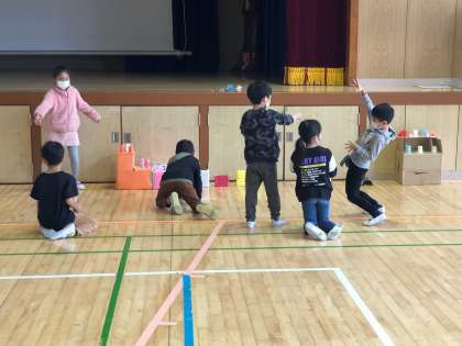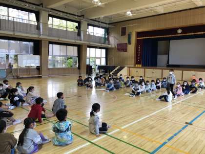 射的、飛行機、パッチンガエル、とことこ車などの動くおもちゃだけでなく、自分で作れるドローンもありました。どの遊びおもしろいので、1年生はみんな笑顔いっぱい楽しみました。2年生は、1年生にていねいに遊び方の説明をして、困っていたらやさしく教えていました。活動の終わりには、お互いに感想を伝え合いました。
