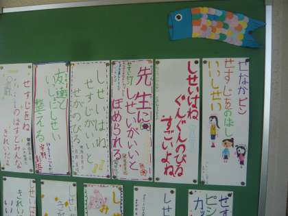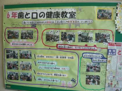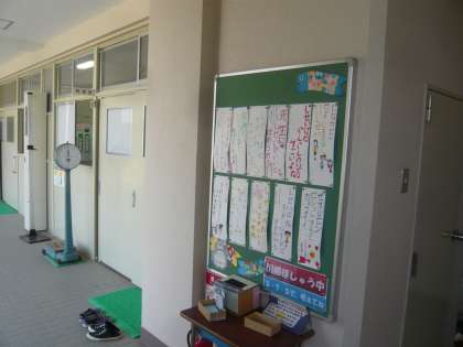保健室の近くの掲示板には、健康に関わる掲示物がきれいに掲示されています。