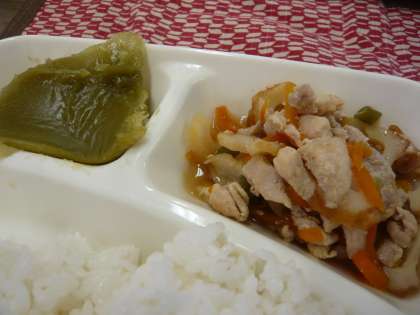 献立は、かやくご飯、みそ汁、抹茶ういろう、ごはん、もみのり、牛乳でした。