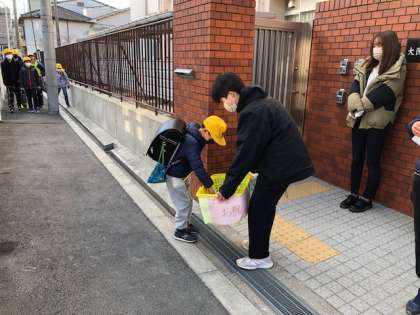 今日は桃谷中学校の生徒会が正門に立って、書き損じはがきと古切手の回収をしてくれました。たくさんの子ども達が協力してくれ、生徒会の子ども達も喜んでくれました。