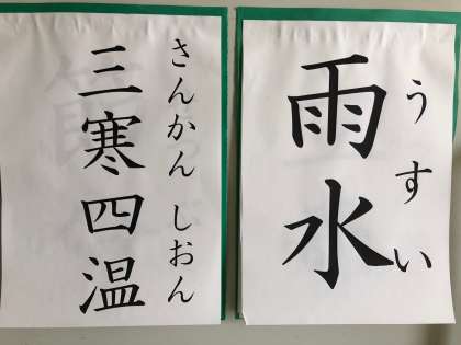 今日の児童朝会では、学校長から「雨水(うすい)」と「三寒四温」の話がありました。