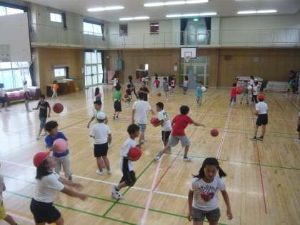 バスケットボールやボール投げなど、いろいろな遊びに興じていました。
