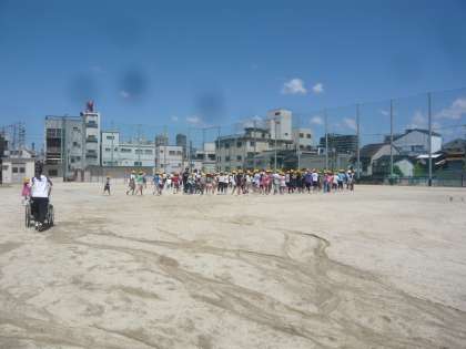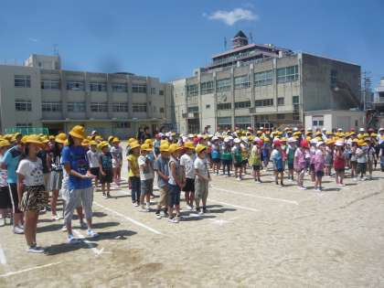 今回、避難開始から避難場所に集合し、全学年の人数報告が終わるまでにかかった時間は、3分19秒でした。