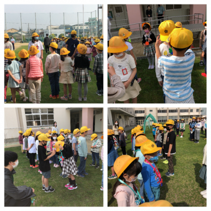 今日は児童朝会の後、運動場で1年生との対面式を行いました。