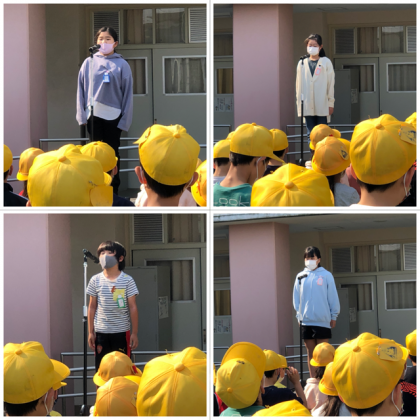 今日の児童集会では、前期に児童会のメンバーとなった児童への認証式を行いました。