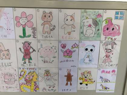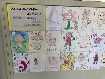 本校では、毎年子ども達が考えたマスコットキャラクターをさまざまな場面で使用しています。今年も子ども達の力作がずらりと並びました。最後は投票で一点が選ばれます。懇談会などの機会に、保護者の皆様にも投票していただけますので、よろしくお願いします。