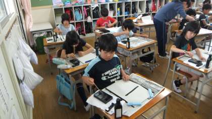 3年生が、書写の時間に初めての毛筆習字を行いました。