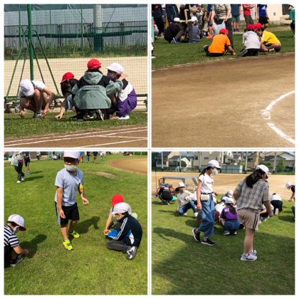 全体練習の後に、みんなで芝生の手入れをしました。地域の方にもお手伝いいただいている芝生の手入れですが、今日は子ども達が芝以外の草抜きをしました。短い時間でしたが、たくさんの草が抜けました。