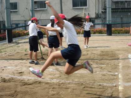 助走・踏み切り・空中姿勢・着地をそれぞれのコーナーで練習をしています。